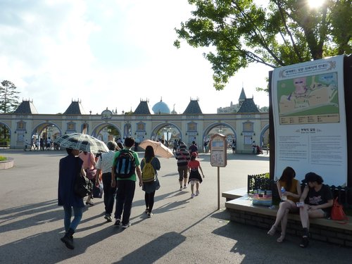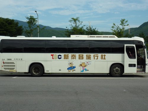 8/26大約下午1:00,我們離開了春川明洞,前往愛寶樂園,車程大約是2小時30分鐘,小江是個相當盡責的導遊,每次只要一上車,就麥克風不離手,永遠有講不完的故事。