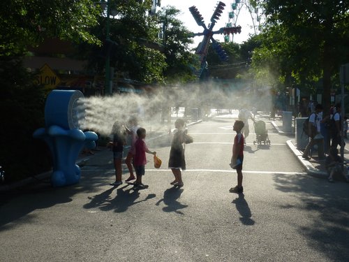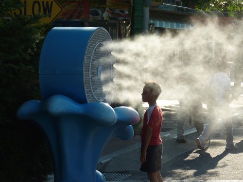 天氣相當熱,弟弟跑去涼快一下