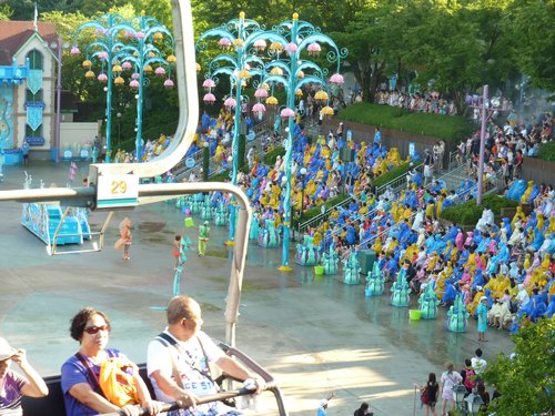 纜車終點的廣場,有表演活動正在進行,每個人都穿著雨衣,原來表演的過程中會向觀眾噴水喔!我們來的太晚,無緣參與這場盛會。