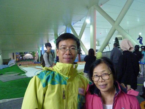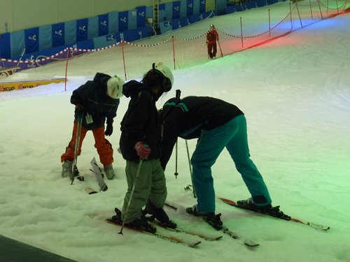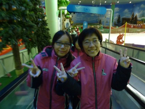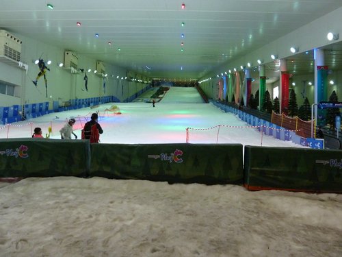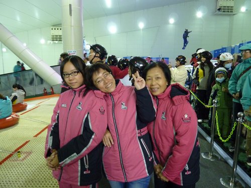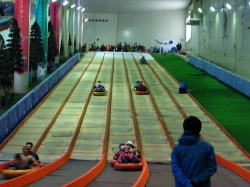 大約9:00我們抵達PLAYDOCI室內滑雪場,頭頂有很多小白球飛來飛去
