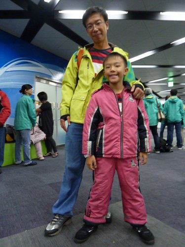 弟弟和姐姐的雪衣是整套的,ANDY在幫弟弟穿