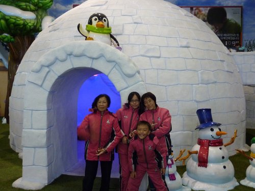 雪屋前照一下,雪屋是假的啦!