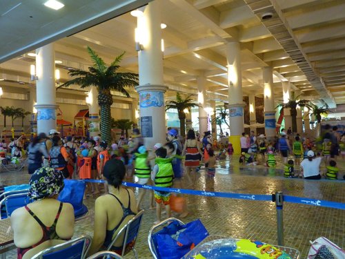 人潮真多,我們滑雪盆的時間大約只有一個小時左右,不玩水的人可以繼續玩到下午一點。