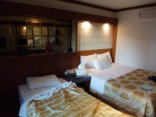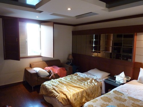 我們是五個人,弟弟不占床,所以是兩間雙人房