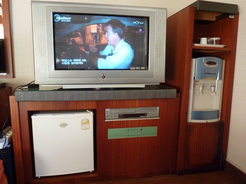 電視不是液晶的,有冰箱和飲水機