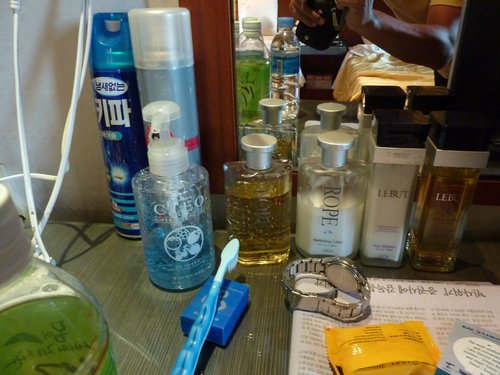 因為韓國的氣候乾燥,飯店還提供免費的乳液可以使用,瓶瓶罐罐還真多,不過我們都沒用。