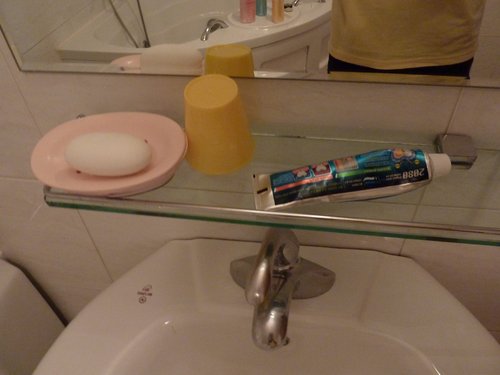 整條的牙膏,牙刷要自己帶喔!