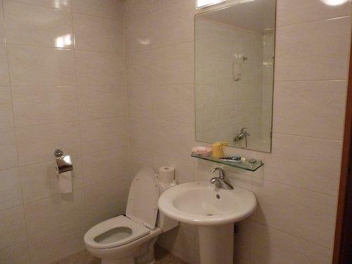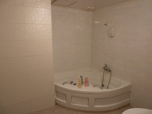 這間飯店應該不是新的建築,但是可以發現廁所浴室磁磚的接縫,都是白白的,看起來很乾淨,因為韓國氣候乾燥的關係。
