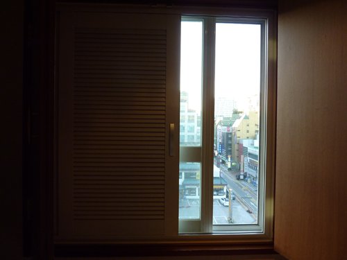 窗戶有好幾層,最外層是紗窗,再來是玻璃窗,再來是像百葉窗的鋁窗