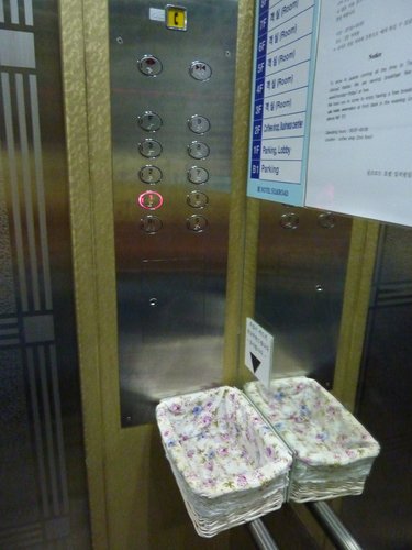 發現飯店電梯都有一個這樣的籃子
