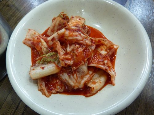每餐必有的泡菜,無限吃,不夠可以再加,看起來很辣,其實還好。