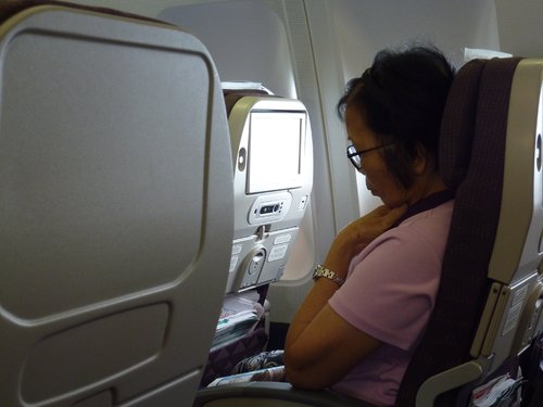 起飛後,到達平流層,機長宣布可以使用電子產品