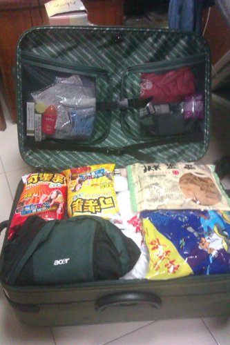 我們的行李箱,這是爸爸和弟弟用的,媽媽和姐姐借用姑姑的行李箱,沒照到。阿嬤自己用一個小的。
