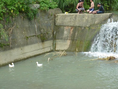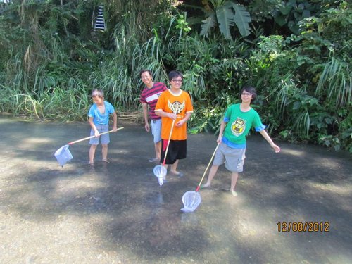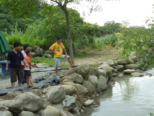 收拾好帳篷,天氣相當的熱,先到旁邊的小溪玩水抓蝦