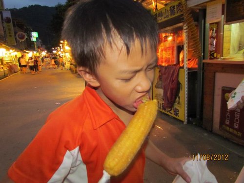 弟弟肯玉米肯得很......,隔天掉了一顆牙齒。