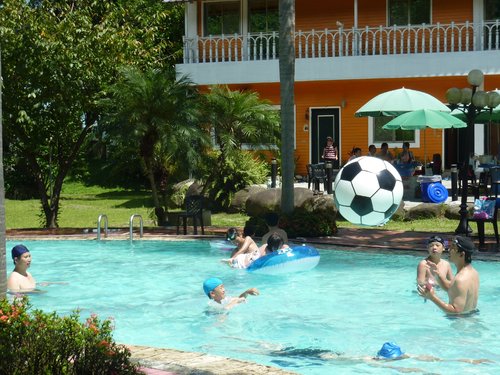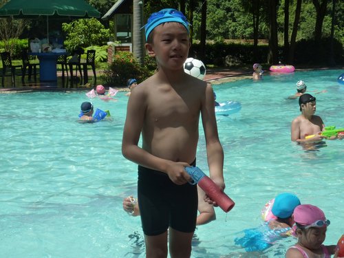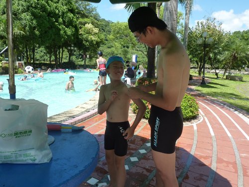 再來去游泳池泡個水,清涼一下。紫外線強,防曬的工作不能少。