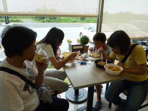 時間大約將近2:00,我們在客來堡休息站的7-11用餐。