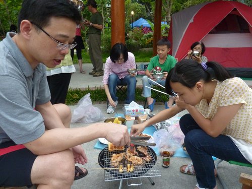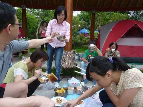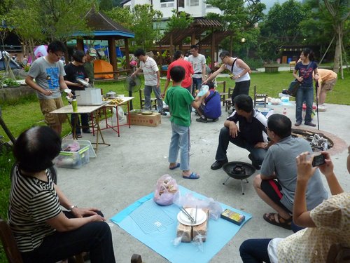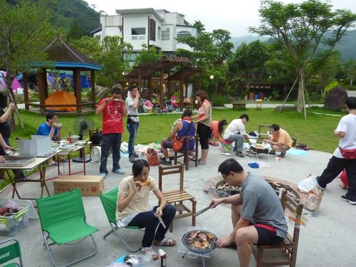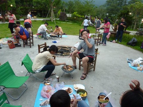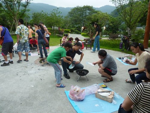 分組烤肉,大家都忙著烤肉跟大快朵頤。