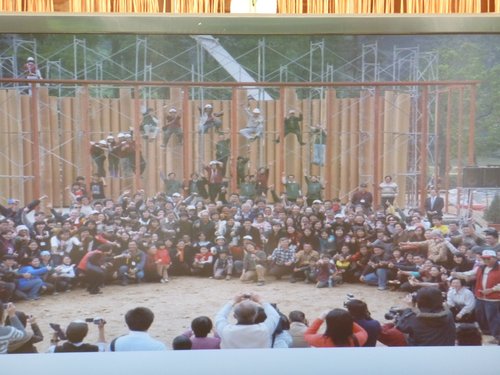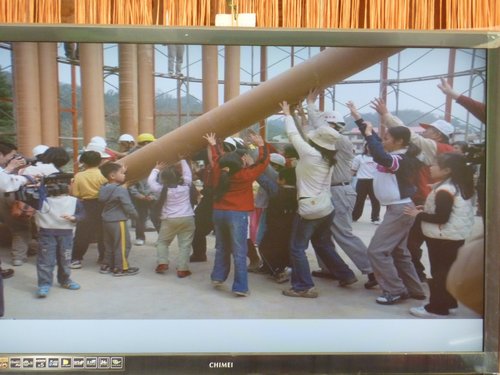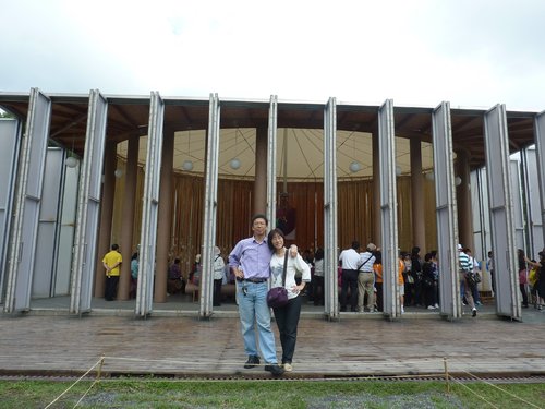 有導覽員解說紙教堂的由來,及當初興建的過程。
