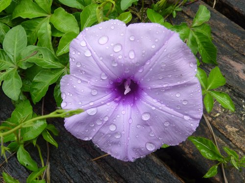 活盆地旁雨後的牽牛花,顯得特別漂亮。