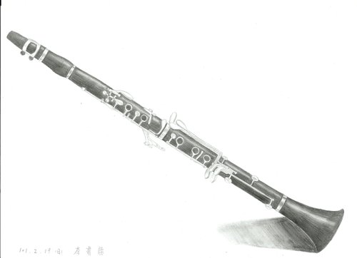 姐姐就讀國中的管樂班要畫自己的樂器,以下是姐姐的豎笛素描畫。