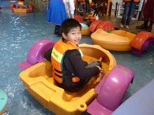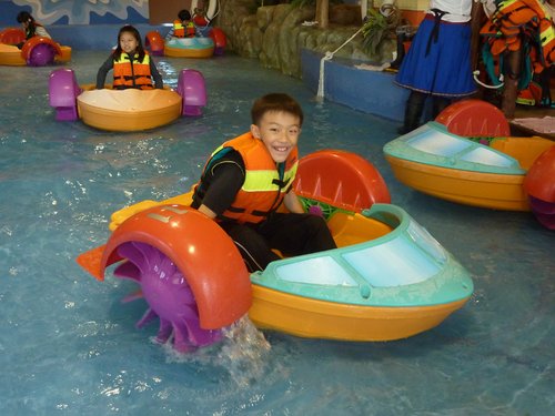 q準備去玩飛躍愛琴海,在小人國叫做轟浪,很刺激喔!