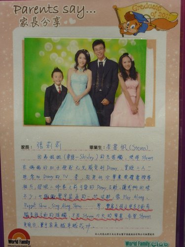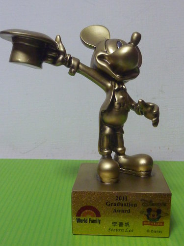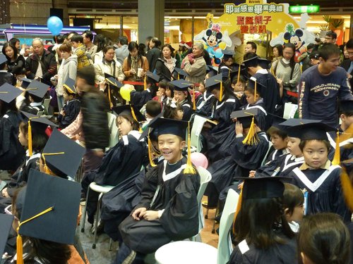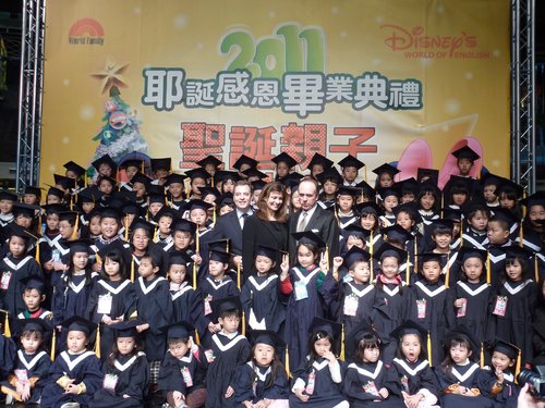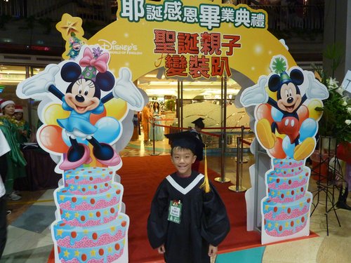 今天中午,媽媽帶我去台北參加迪士尼美語的畢業典禮,因為我通過了畢業測驗,所以我才可以順利的畢業,畢業了有很多東西可以領,這些東西都很好。