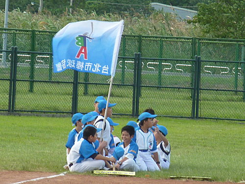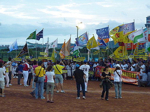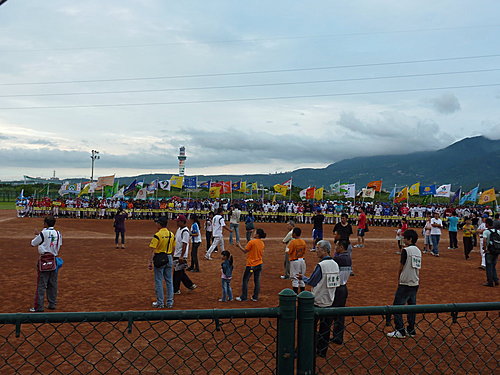 壯觀的旗海,最左邊的第一個隊伍就是[台北市棒球協會社區少棒隊],8月15日成軍,不到2個月就上場比賽了.雖然三戰全敗,但是他們精采的表現,完全不像是剛成軍2個月的隊伍,希望繼續加油!