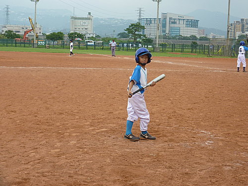 99/10/16弟弟初登場,準備上場打擊,看起來不緊張,不過事後他說腳一直在發抖,很不幸的第一個打擊是被三振,沒關係,繼續加油!