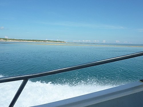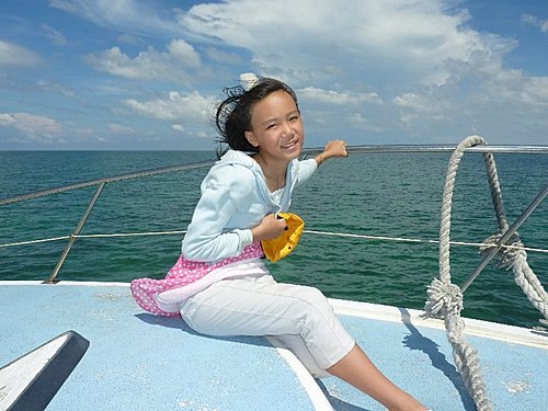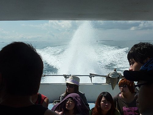 雖然曬太陽,但是比船艙內要舒服,一路吹著海風回本島