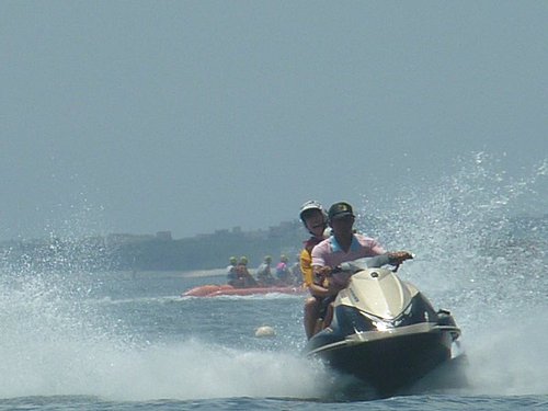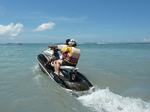 在海上飆車真是夠癮,如果能自己騎那更好玩!