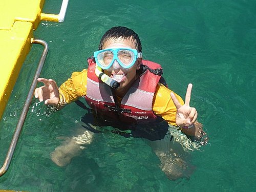 在所有的項目幾乎玩盡之後,我們去參加動力浮潛,工作人員說只要會呼吸的人就可以參加!
