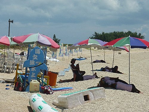 中午一部分的工作人員都在陽傘下休息,但是為了服務顧客,他們有人值班,中午不打烊喔!可以繼續玩,真是不會浪費時間,不錯的服務喔!