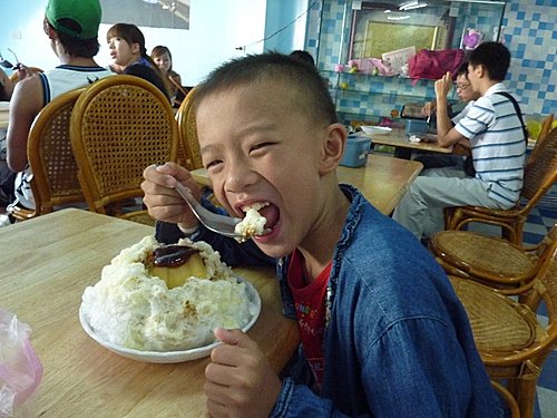 回到馬公市大約已經是下午三點左右,大家又到中正路7-11旁買了蔥油餅,之後沒找餐廳吃飯,反而是找了一家冰店吃冰!