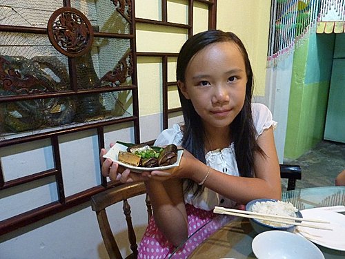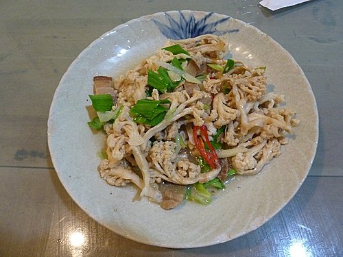 來到澎湖第二天了,都沒吃到甚麼大餐,今晚就聽民宿主人的建議,到馬公市區附近吃道地的澎湖菜,這間餐廳的名字叫做[花菜干],很實在,很道地,在台北也有分店喔!無奈身上現金不足,又不知道餐廳有沒有刷卡,只好先去提款機領錢,沒想到澎湖的7-11竟然沒有提款機,只好又跑到市中心的郵局領錢,到了餐廳已將近晚上八點了,還好還有上菜,老闆娘介紹了幾道道地的澎湖菜,我們四個人,二大二小,三菜一湯老闆娘說就夠了,配上白米高粱飯。