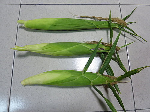 心得及感想:這次種植四株白玉米、二株紫玉米,共收成9穗,其中三穗授粉較完全,其他則授粉不全,導致很多空包彈,所以不管玉米的大小如何,完全授粉才是成功的關鍵,玉米是靠風來授粉,由於雄花雌花開花的時間沒有配合好,導致授粉不全,還有為了避免這種情形,玉米應該適合大面積種植,授粉可以互相支援,才會有好的收成。很慶幸地這次除了有金龜子的騷擾之外,並沒有其他的病蟲害。
