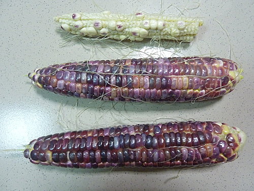 沒有很大,紫玉米大約20公分左右,有一穗授粉不全。