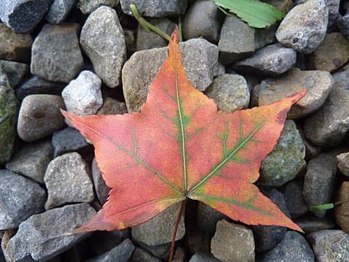 現在不是楓紅的時節,不過在地上還是被我發現一葉紅楓葉