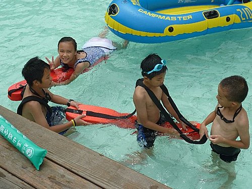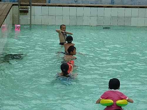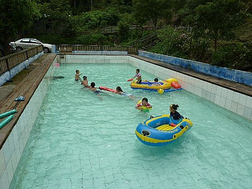 下午天氣還算不錯,太陽很大,營區中的戲水池是個消暑的好地方,不過因為是山泉水,所以大太陽下的池水還是很冰喔!