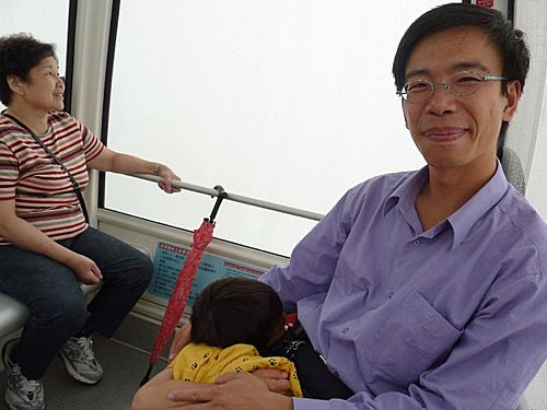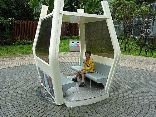 非假日搭乘纜車的人不多,相對的比較悠閒,不過雖然人不多,我們買票還是花了一些時間,想想如果假日人潮洶湧,不知如何是好?很難想像,記得去年去香港搭昂平纜車,假日人潮很多,排隊井然有序,售票窗口也多,速度也很快,而我們的貓空纜車雖然便宜,全票只要50元,有自動售票機,又可以使用悠遊卡,但是美中不足的是,團體票的售票窗口及優待票的售票窗口及三次票的售票窗口卻是同一個,而且速度超慢,回程還要到同一個窗口退押金,想一想如果是假日該如何是好?光等排隊退押金還得跟排隊買票的人一起排隊,還好今天是非假日!