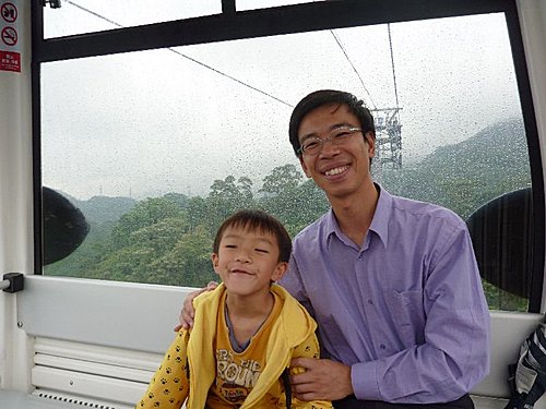 99/05/07星期五天氣陰有雨,因為5月1日小朋友運動會,所以5月7日補假,爸爸特別請了一天的假,全家準備到台北體驗貓空纜車,與媽咪以前台北的鄰居蔣奶奶一同前往.