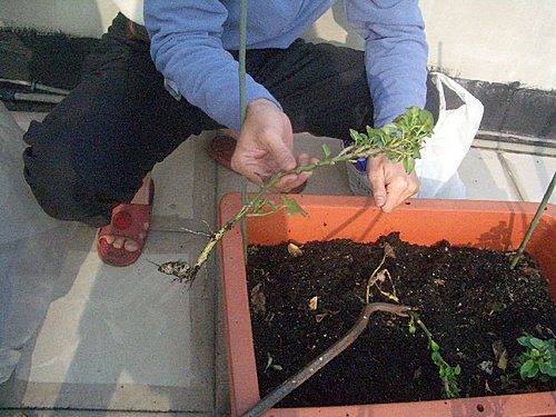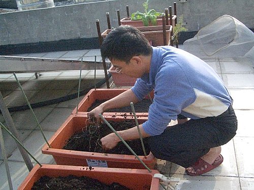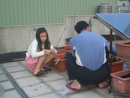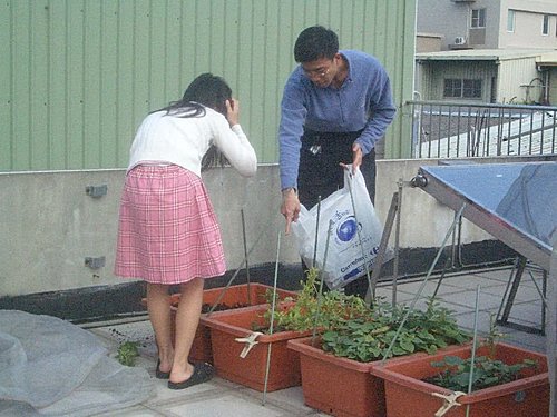 今天天氣不錯,將頂樓荒廢一陣子的菜園整理一番,重新種過新的種子,將種了很久但是還沒枯萎的地瓜葉剷除,沒想到竟然挖到地瓜,真是驚喜,雖然很小一條,也不知道可不可以吃,但是也算是另一種收成.