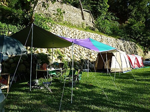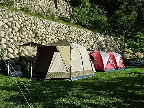 這次我們有三頂帳篷,加入了王老大ㄧ家人,前面那頂土色的就是他們家的豪華威力帳.