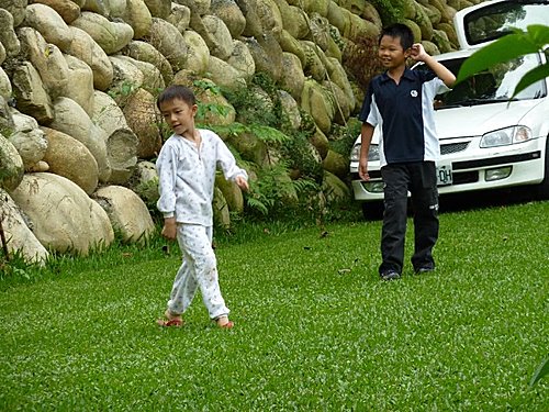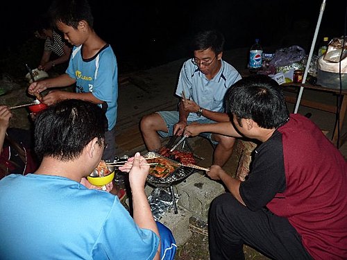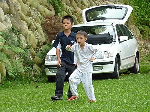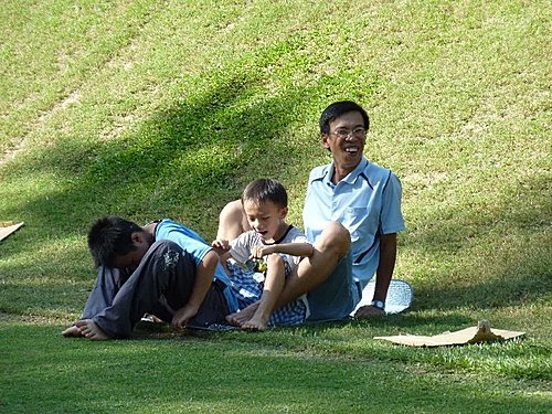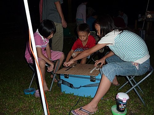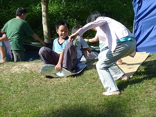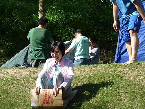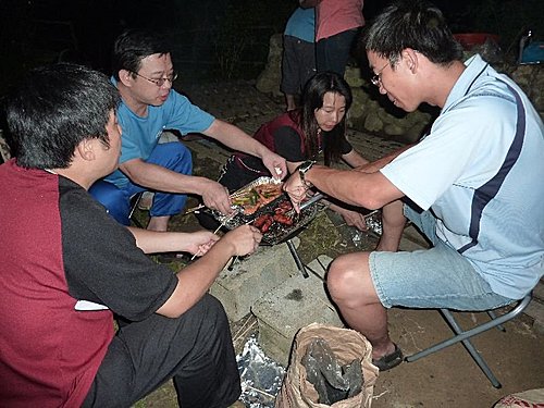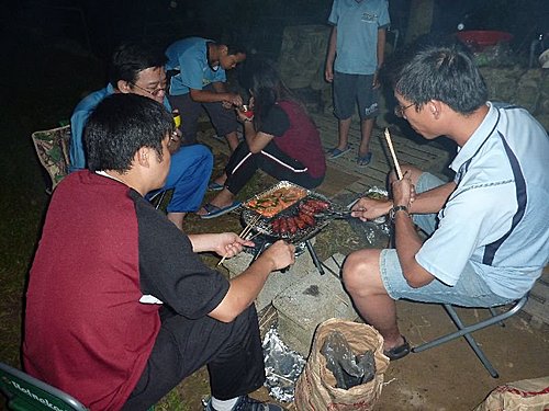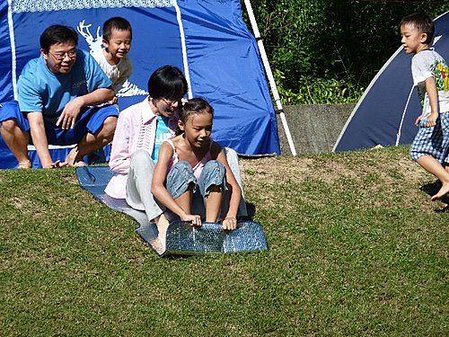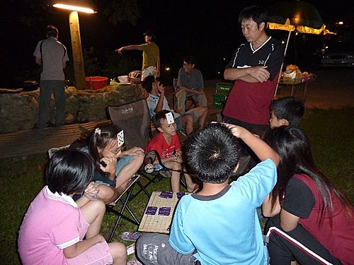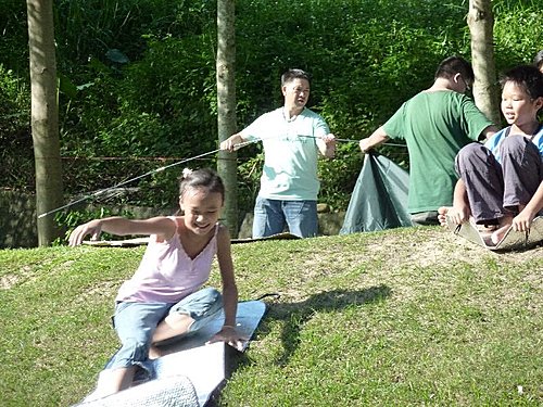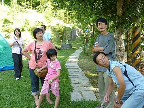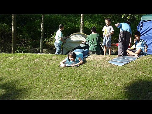 這次兩天一夜的中秋露營,還算是圓滿成功,老天爺也很幫忙,聽說北部地區中秋節都看不到月亮,隔天星期日還下大雨,我們真是幸運,只有星期日早上有下一點雨,之後又出大太陽,趁機把帳篷曬ㄧ曬.出來露營人多真的是比較好玩,中秋夜大家玩到近12點才去洗澡睡覺,就寢時已是12點多了,晚上就是有人不睡覺,慘的是竟然還放鞭炮,害的大家都沒睡好,小孩子除外,凌晨1點多竟然還被地震震醒,第一次露營睡在帳蓬碰到地震,心想地震應該不會把帳篷給震倒吧!挺安全的.不過心想帳篷旁邊山壁的大石頭會不會掉下來啊!想完地震也震完了,人還是躺在帳篷裡,真是老天爺保佑啊!!