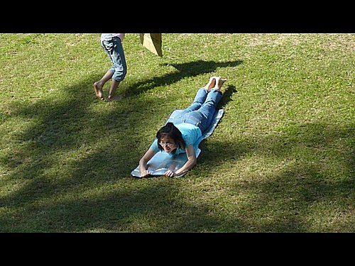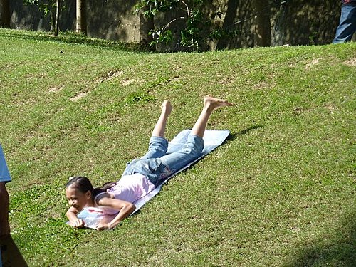 姑姑叫你趴著滑比較刺激,是頭上腳下的趴,你卻是頭下腳上,嚇了大家一跳!