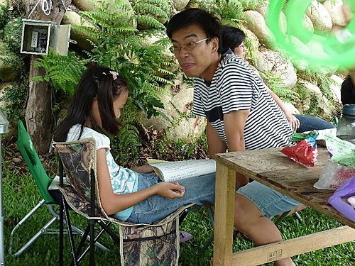姐姐功課沒做完,帶來露營繼續努力,下次請記得要先把功課作完喔!