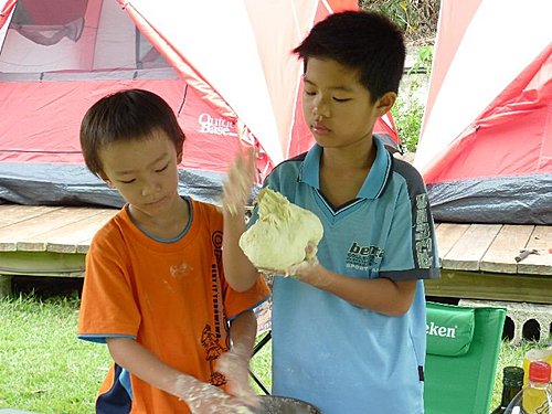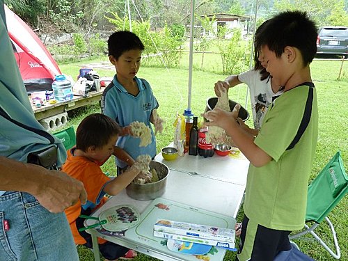 中午的午餐是吃自製披薩,所以小朋友負責開始揉麵糰