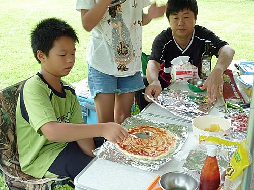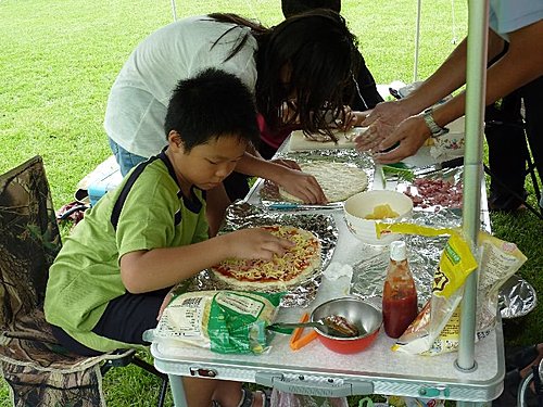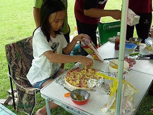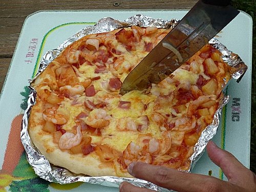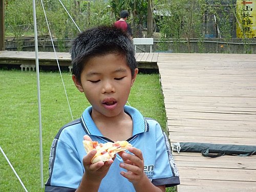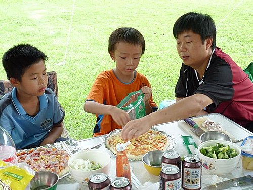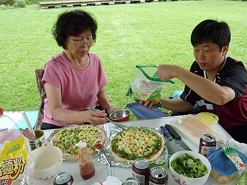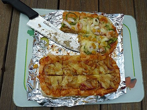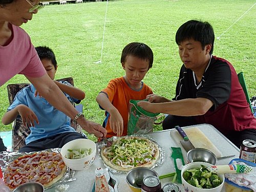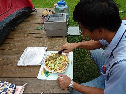 第一個披薩烤好了,大家都餓了,先吃再說,邊吃邊烤