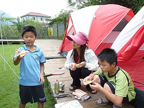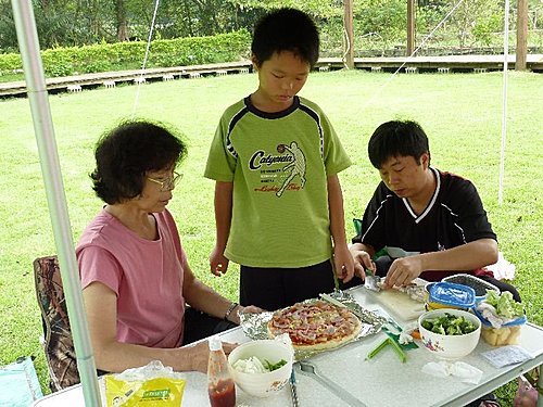 98/08/22-23星期六早上9點出發前往苗栗東風山莊露營(全家第四次露營),大約10點40分抵達營區,每個營位500元(有木頭棧板及美麗的草皮),還有供電及熱水,廁所及浴室相當乾淨,非常不錯,值得推薦.當天我們是第一個抵達營區的,我們當然是選擇棧板營位,主人說還有10幾個帳棚,不過他們都是在草皮區,所以棧板區營位這區又是被我們包場.