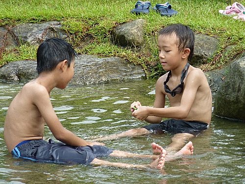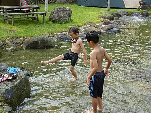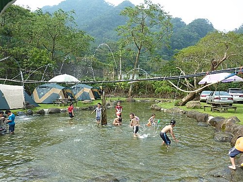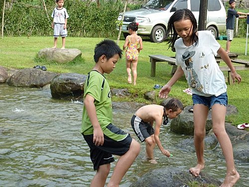 營區有一個戲水池,是山泉水,相當涼快喔!唯一的缺點就是池底的水泥地太粗,泳褲可能會磨破,姊姊不小心跌倒,膝蓋還刮傷呢!所以要特別注意安全喔!!